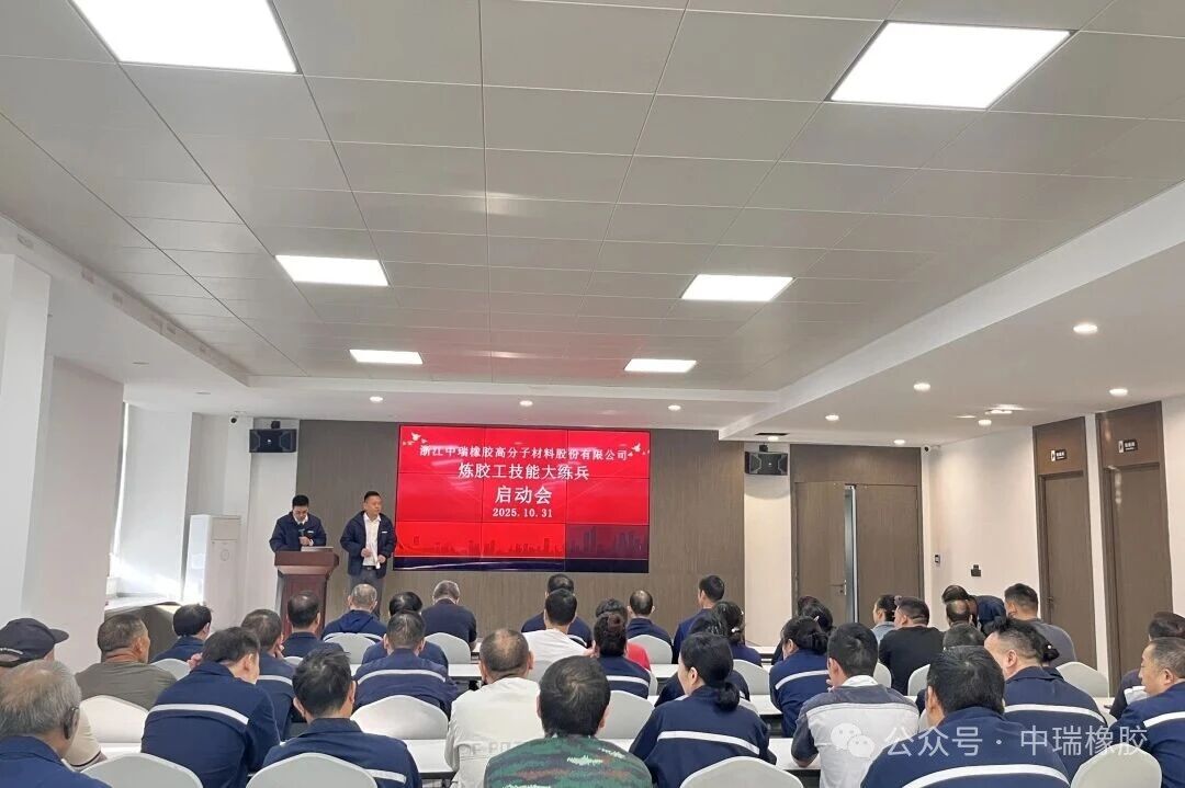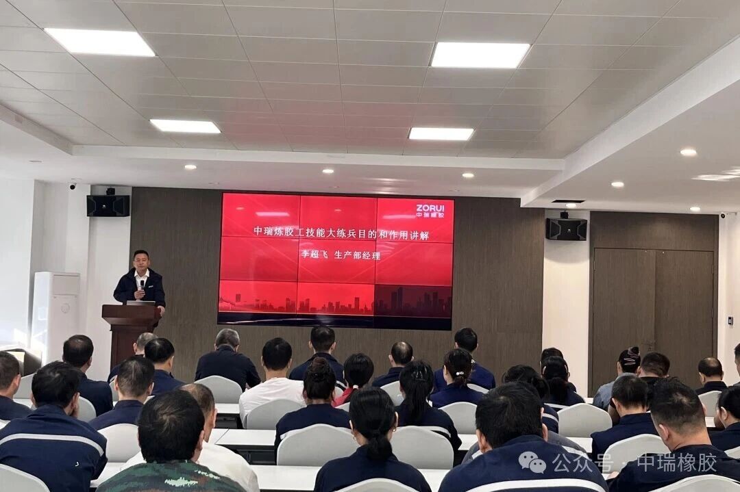 为提升炼胶工技能水平,加强人才梯队建设,推动公司高质量发展,2025年10月31日,浙江中瑞橡胶人力行政部、工会委员会组织召开2025年炼胶工技能大练兵启动会,技术部总工程师刘锋、生产部经理李超飞、人力行政部经理郑志杰、质量控制部经理张晨,以及生产部班长、员工共计50余人参加本次会议。会议明确了练兵目标、考评标准,旨在激发员工潜能,为后续炼胶工技能等级资格考核打好基础。