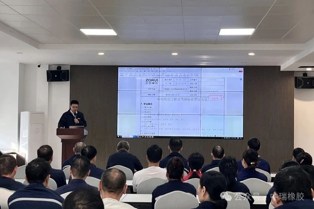 第二项议程,由人力行政部经理郑志杰讲解炼胶工职业等级标准管理方法。郑经理指出,职业等级标准是员工技能提升的“标尺”,也是个人职业发展的“阶梯”,号召全体员工认真对待、积极对标。
