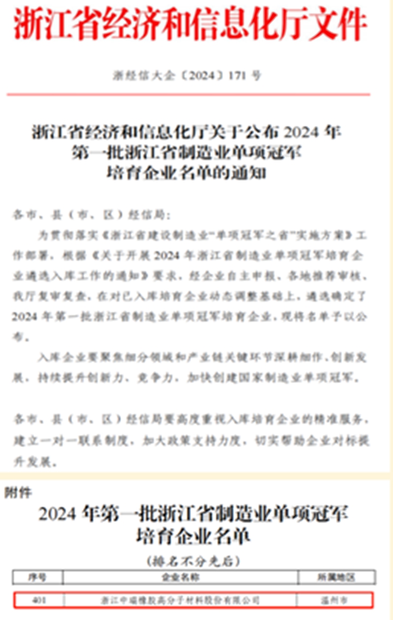 2024年第一批浙江省制造业单项冠军培育企业
